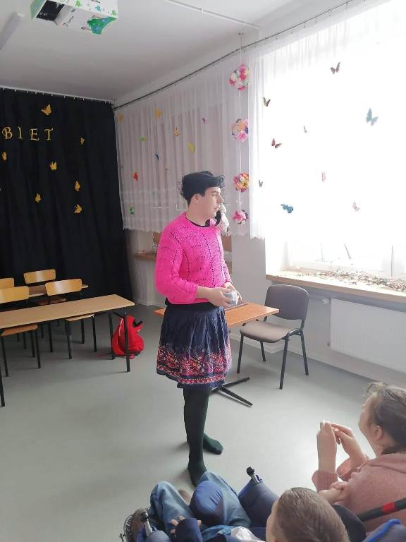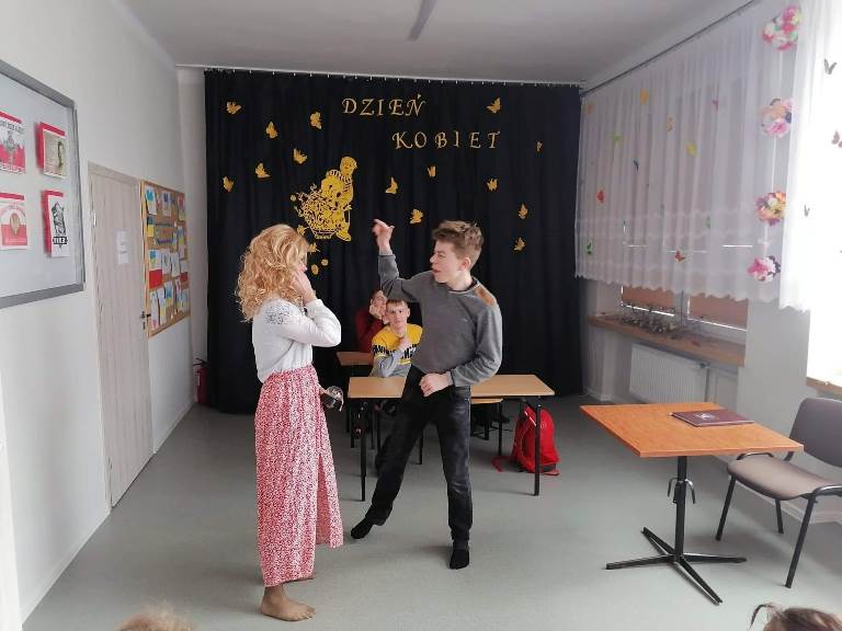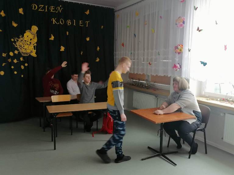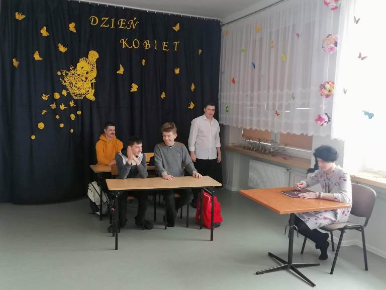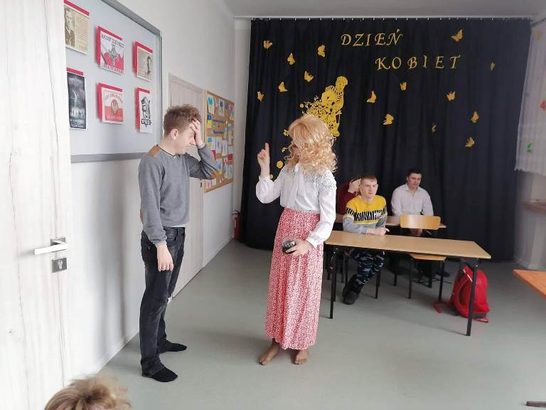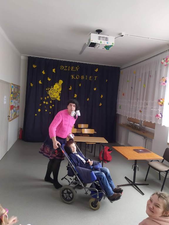 Dzisiejszy dzień stał się wyjatkową okazją, aby ukazać pracę każdej kobiety w naszym Ośrodku. Chłopcy uczcili ten dzień niepowtarzalnym przedstawieniem pt: "Panie oczami naszych Panów," wcielając się w rolę każdej z nas. Okazało się, że było to dla nich nie lada wyzwaniem, ale również doskonałą zabawą, ktora wywołała masę uśmiechów na naszych twarzach. W tym dniu swoje święto obchodziła również nasza wspaniała Pani Dyrektor o czym nie zapomniała cała spoleczność szkolna
