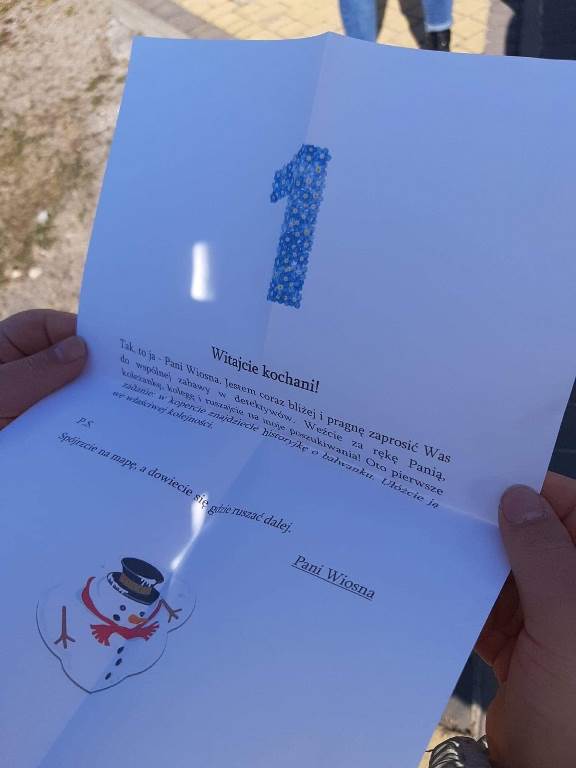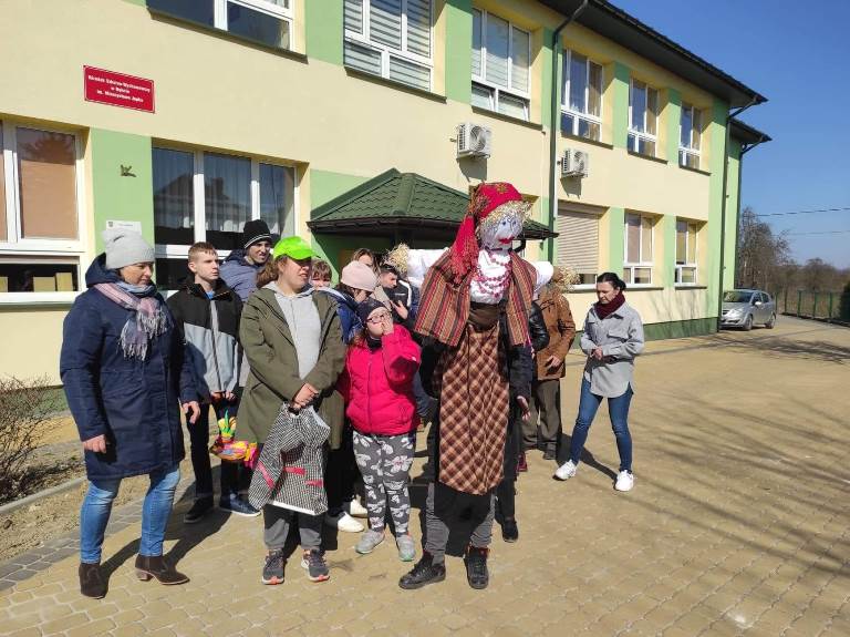 Dziś świętowaliśmy w naszym Ośrodku Pierwszy Dzień Wiosny. Powitała nas piękna pogoda, dzięki której mogliśmy uczestniczyć w Wiosennych podchodach. Dzieci otrzymały listy od Pani Wiosny, w których były zamieszczone różne zadania do wykonania oraz mapę. Zgodnie z wyznaczonymi wskazówkami przeszliśmy barwnym korowodem z Marzanną "zimową" żegnając, a zarazem poszukując "wiosennej". Wszystkie zadania wykonane zostały wzorowo. Na koniec zabawy wszyscy wróciliśmy w dobrych humorach do szkoły, gdzie czekał na nas grill z pieczonymi kiełbaskami, które smakowały wyśmienicie.