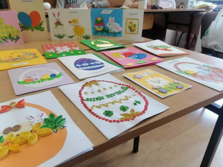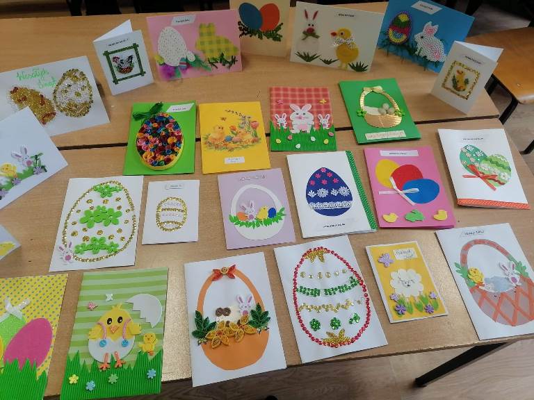 W dniu 11.04.2022 odbyło się podsumowanie szkolnego konkursu "Kartka Wielkanocna." Celem konkursu było propagowanie tradycji związanych ze świętami wielkanocnymi, rozwijanie zainteresowań dzieci różnymi technikami plastycznymi, kształcenie inwencji twórczej i pomysłowości. Wszystkie prace były niezwykle ciekawe. Wykonane z różnorodnych materiałów, dlatego też każda kartka była inna i jednocześnie wyjątkowa. Dziękujemy wszystkim uczniom którzy podjęli wyzwanie i wzięli udział w konkursie. Laureaci otrzymali drobne nagrody rzeczowe, a pozostali uczniowie słodki upominek.