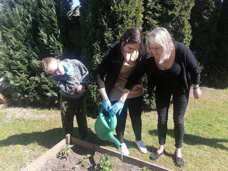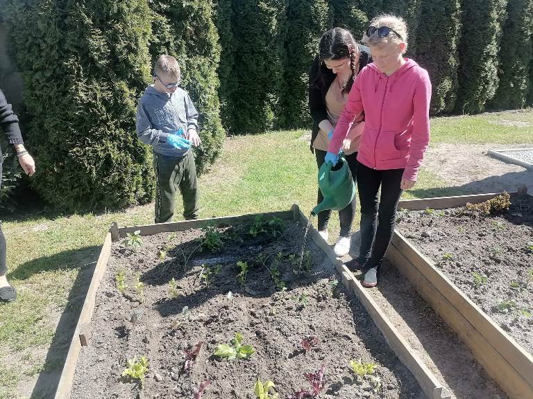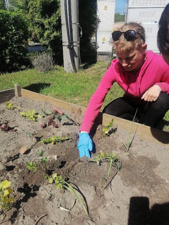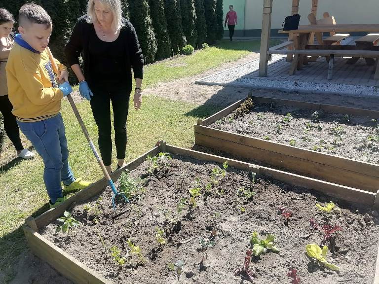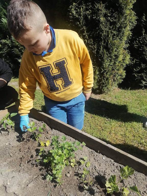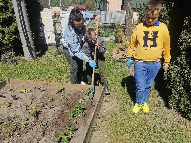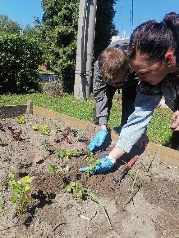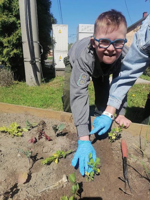 Uczniowie naszego Ośrodka wykonali kolejne zadanie w ramach projektu "Z ekologią na Ty." Podczas lekcji otwartej chętnie wykonali zadanie z modułu V "Mój pomysł" sądząc sadzonki owoców i warzyw w mini ogródku na przyszkolnym placu. Wykonanie tego zadania sprawiło, że doświadczyli oni wiele wrażeń sensorycznych, zmysłowych i estetycznych. Nasze oczy będą cieszyć rosnące rośliny, a podniebienia zebrane owoce i warzywa. Zajęcia przeprowadziły nauczyciele: Ewa Fiszczuk, Anna Plichta, Zofia Zając.