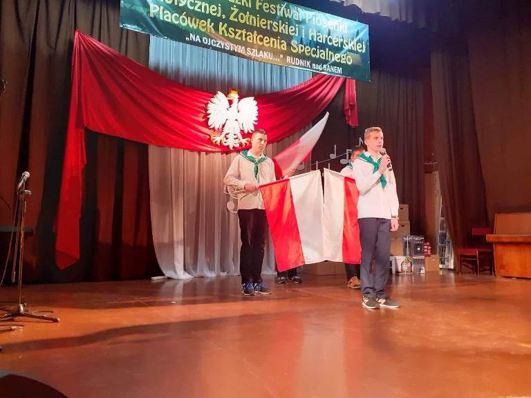 17 listopada 2022r. w Miejskim Ośrodku Kultury w Rudniku nad Sanem odbył się X Festiwal Piosenki Patriotycznej, Żołnierskiej i Harcerskiej "Na ojczystym szlaku".W Festiwalu wzięły udział drużyny harcerskie skupione w Nieprzetartym Szlaku Związku Harcerstwa Polskiego z województw podkarpackiego i świętokrzyskiego. Nasz Ośrodek reprezentowała Vl drużyna "Nadwiślańskie Trampy," która zaśpiewała dwie piosenki: "Wojenko, wojenko" i "Zwycięży orzeł biały." Wszyscy uczestnicy otrzymali pamiątkowe dyplomy oraz nagrody rzeczowe. Impreza była doskonałą okazją do manifestacji patriotyzmu oraz poznania środowisk harcerskich i wymiany doświadczeń między nimi. Serdecznie dziękujemy gospodarzom festiwalu za zaproszenie oraz miłe przyjęcie.