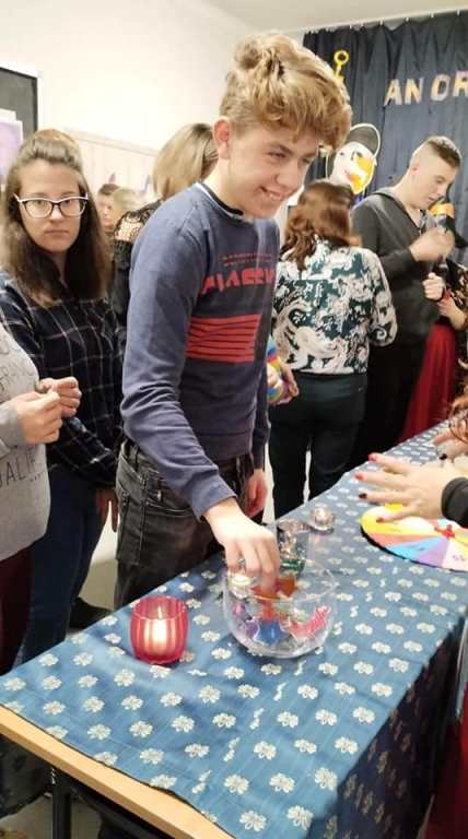 Andrzejki to taki dzień w roku kiedy możemy się przenieść w świat magii i wróżb. Zgodnie z tradycją, jak co roku w naszej szkole odbyła się zabawa andrzejkowa. Szkolny korytarz zmienił się w salę wróżb. Uczniowie mogli dowiedzieć się co czeka ich w przyszłości: szczęście, miłość czy może jakaś inna niespodzianka. Pamiętajmy jednak, że andrzejkowe wróżby to przede wszystkim dobra zabawa, a czy przepowiednie się spełnią- przyszłość pokaże. Czas pomiędzy wróżbami urozmaicała zabawa taneczna oraz słodki poczęstunek. Andrzejkowe spotkanie okazało się fantastycznym wydarzeniem, które dostarczyło wielu niezwykłych przeżyć i emocji. Dziękujemy wszystkim za wspólną zabawę.