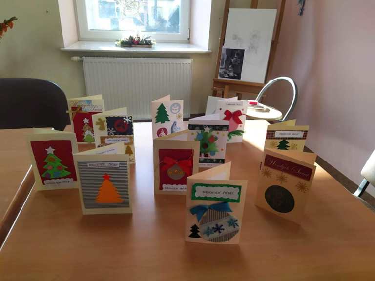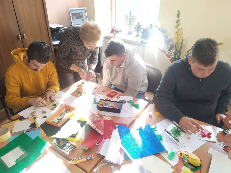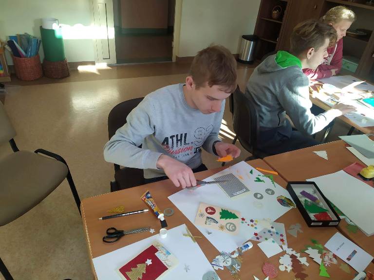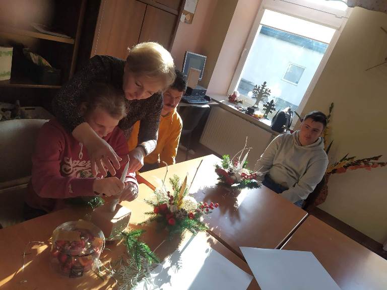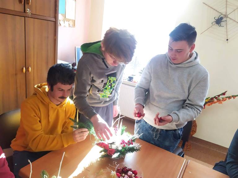 "Święta tuż, tuz... czas przygotowywać świąteczne kartki i dekoracje." W dniu 08.12.2022r. grupa uczniów naszego Ośrodka uczestniczyła w świątecznych warsztatach zorganizowanych przez Środowiskowy Dom Samopomocy w Ożarowie. Wychowankowie z wielkim zapałem i zaangażowaniem wykonywali bożonarodzeniowe kartki oraz stroiki. Wizyta dostarczyła uczniom wiele radości, pozytywnych wrażeń jak również nowych doświadczeń. Serdecznie dziękujemy za zaproszenie i miło spędzony czas.