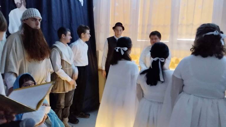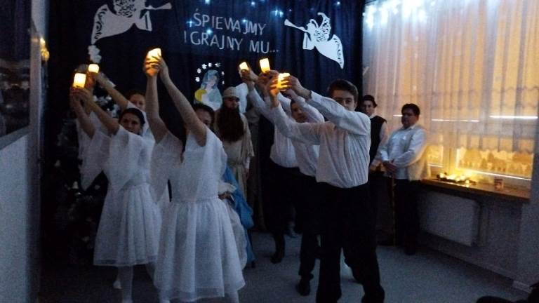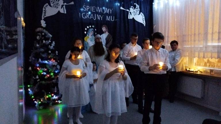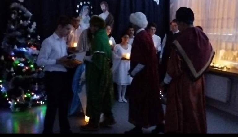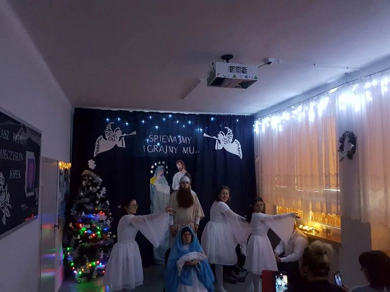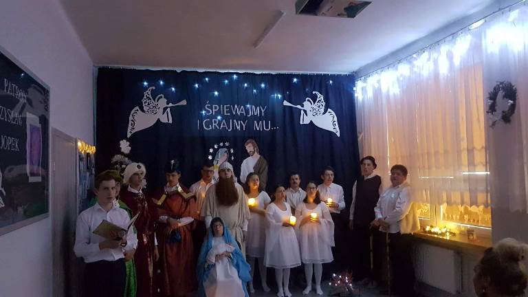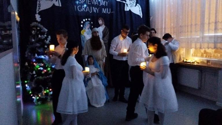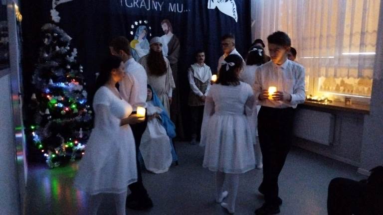 Święta Bożego Narodzenia to piękny czas pełen miłości, pojednania i wzruszeń, z którym wiąże się wiele zwyczajów. Jednym z nich są Jasełka, które przenoszą nas w bardzo odległe czasy i przypominają, że w Betlejem przyszedł na świat Zbawiciel. 21 grudnia uczniowie przedstawili wyjątkowy program artystyczny, który wprowadził wszystkich w świąteczny nastrój. Wszędzie było słychać piękny śpiew kolęd i pastorałek.