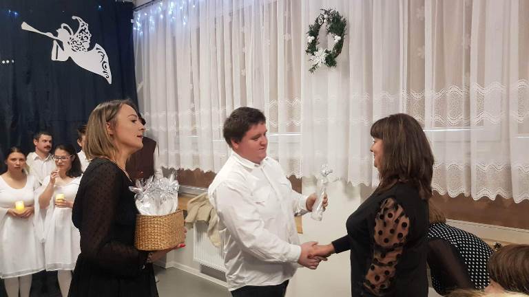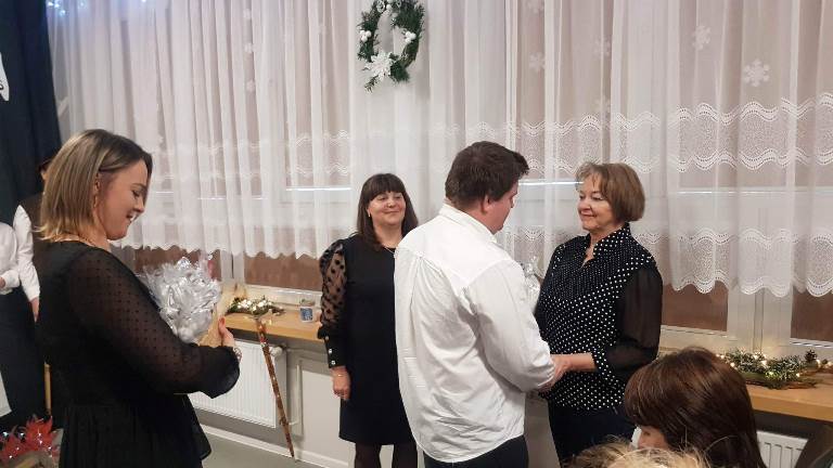 Po występie głos zabrała Pani Dyrektor Beata Zubrzycka, która podziękowała uczniom i nauczycielom za przygotowanie niezwykłych i wzruszających Jasełek, a także złożyła wszystkim życzenia świąteczne. Do życzeń dołączyła się Przewodnicząca Rady Powiatu Pani Bożena Kornacka, życząc wszystkim zdrowych i spokojnych świąt. Następnie wszyscy połamali się opłatkiem i zasiedli do wigilijnego stołu. Był to niezwykle magiczny i niezapomniany dzień.