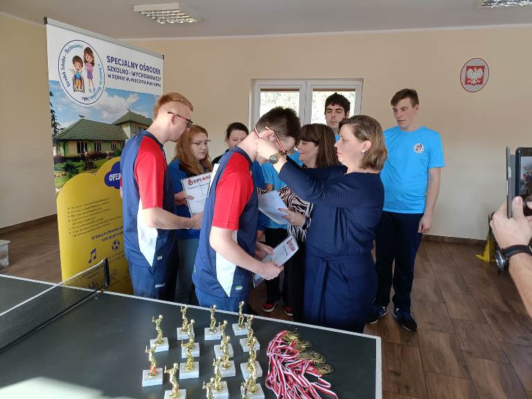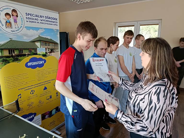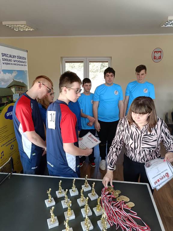 W dniu 28.02.2023 roku w naszym Ośrodku odbył się I Międzyszkolny Turniej Tenisa Stołowego. Swoją obecnością zaszczycili nas zawodnicy i trenerzy z zaprzyjaźnionych Ośrodków z Niemienic, Jałowęs oraz Sulejowa. Po uroczystym otwarciu turnieju przez Panią Dyrektor Beatę Zubrzycką rozpoczęły się rozgrywki, które dostarczyły nam mnóstwa emocji. Turniej ten był doskonałą okazją do integracji, wymiany doświadczeń w duchu sportowej rywalizacji fair- play dla uczniów i nauczycieli. Serdecznie dziękujemy szczególnie Pani Dyrektor Małgorzacie Spychaj, Pani Dyrektor Elżbiecie Wypchło oraz trenerom dzieci za obecność i gorący doping podczas zawodów. W dzisiejszym turnieju wszyscy byliśmy wygranymi dzięki wspaniałej atmosferze podczas gry