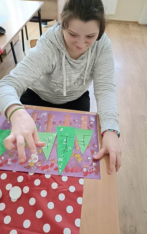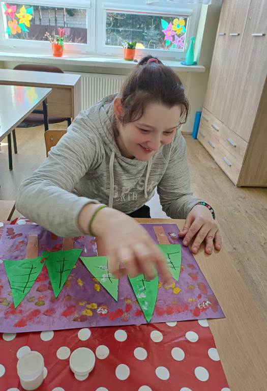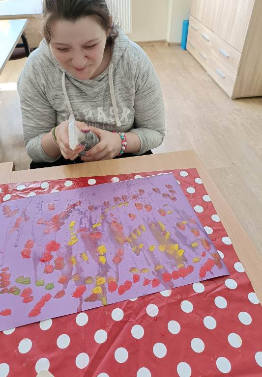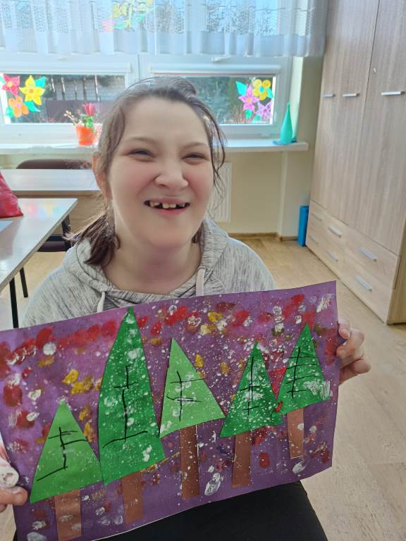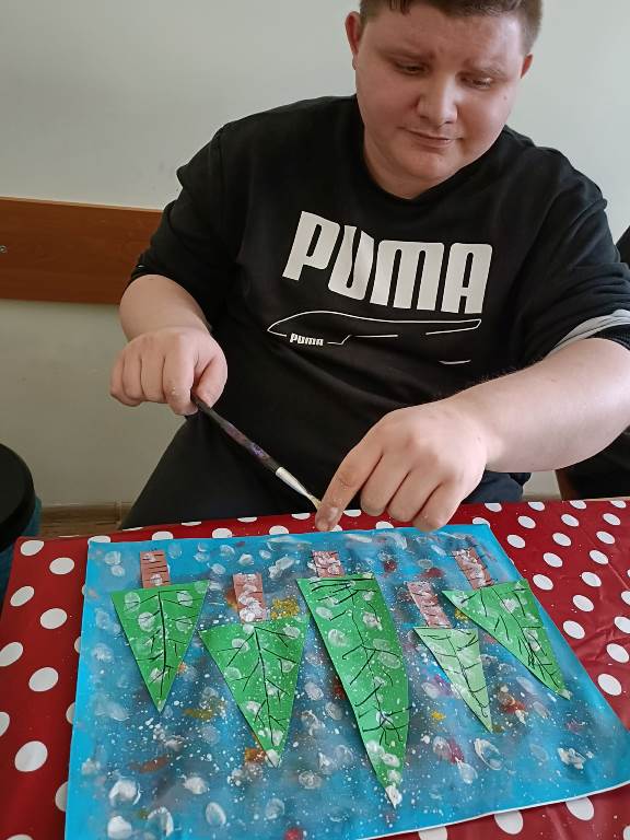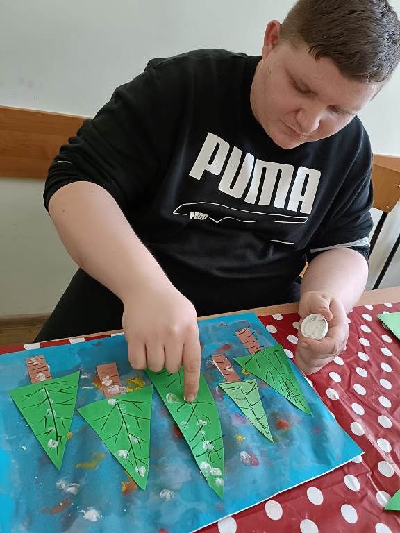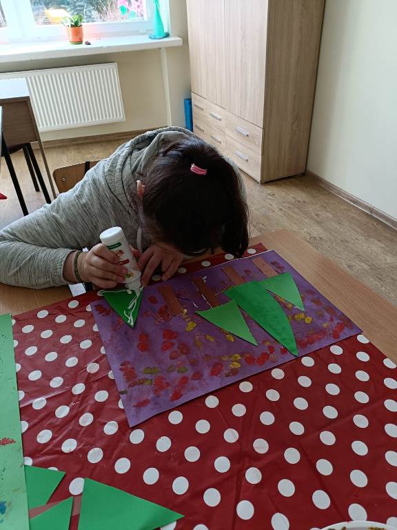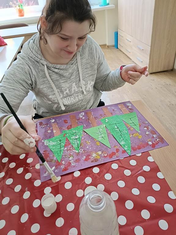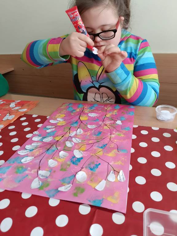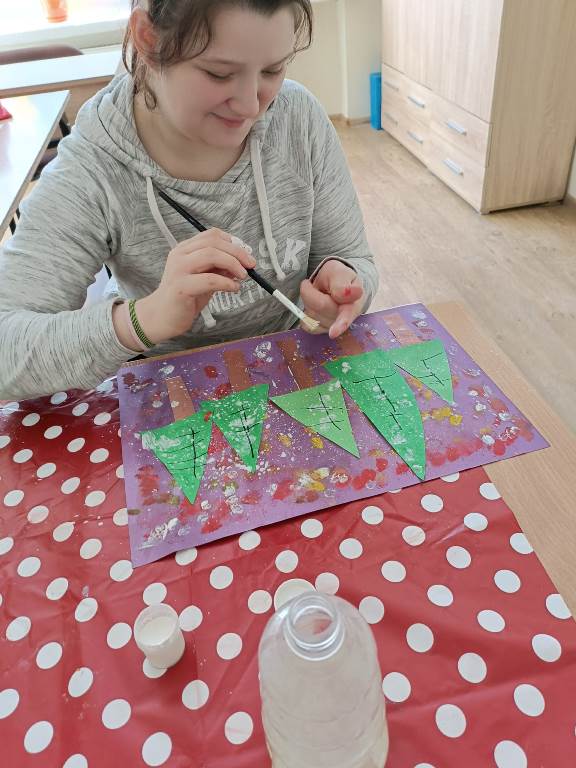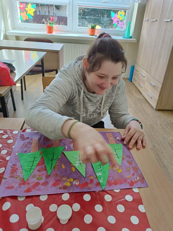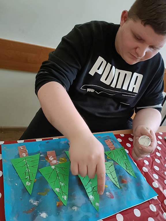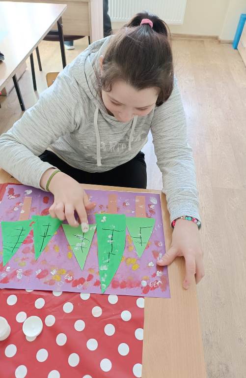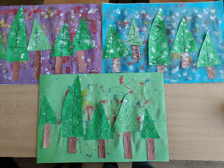 W tym tygodniu zrealizowaliśmy dwa zadania wyznaczone na miesiąc luty oraz marzec projektu edukacyjnego "Kreatywne prace plastyczne." Wykonaliśmy zimowy las na papierze malowanym deszczem