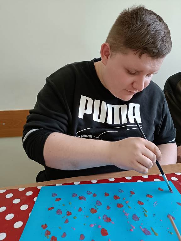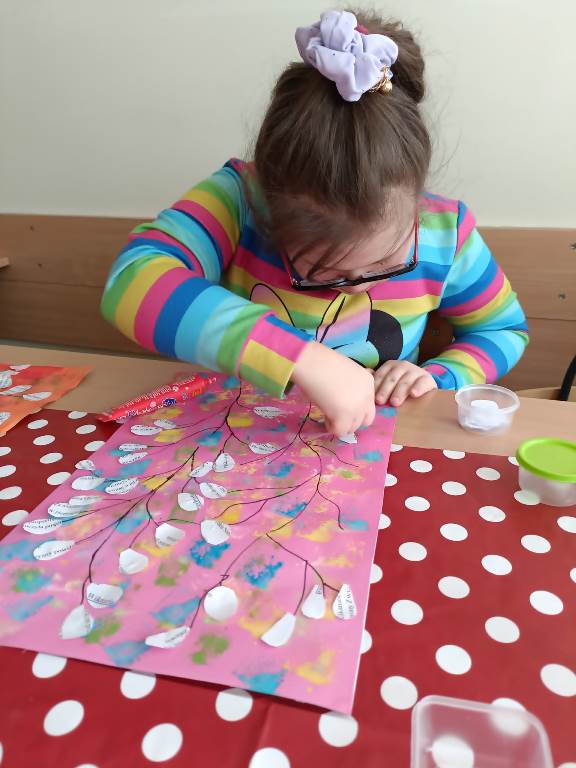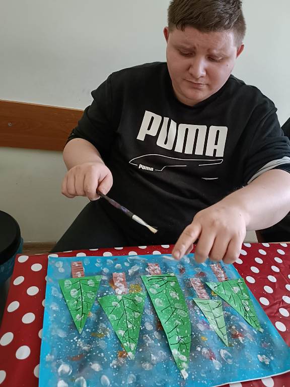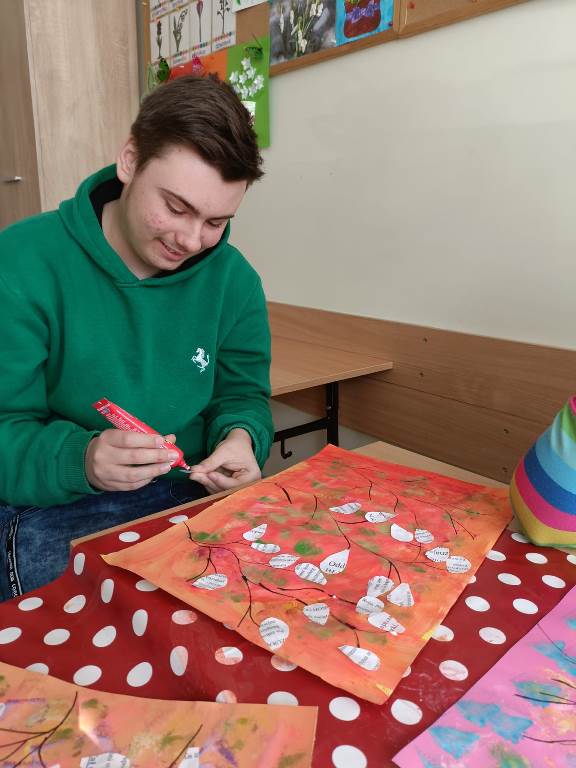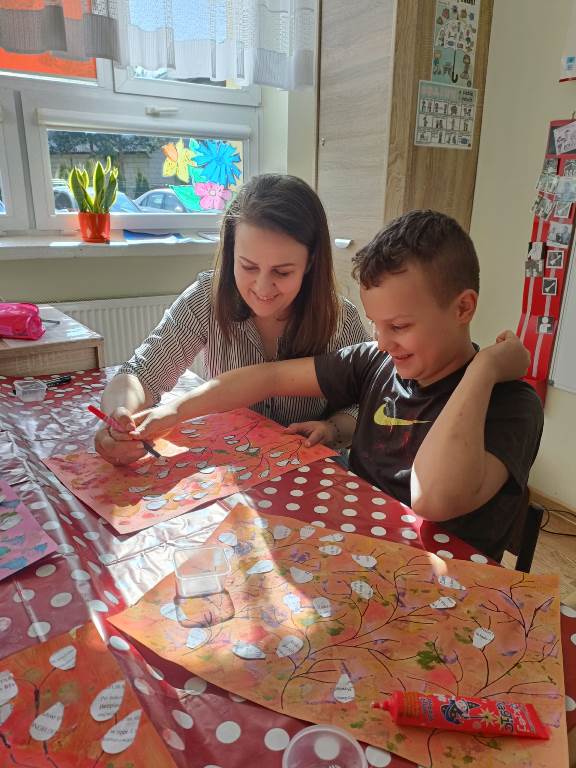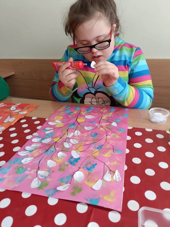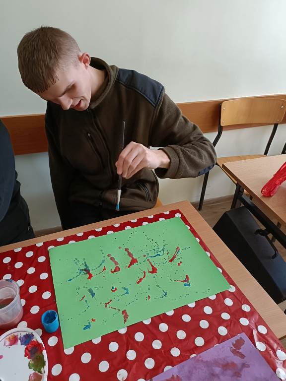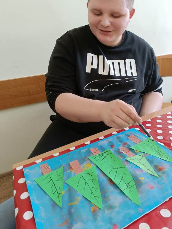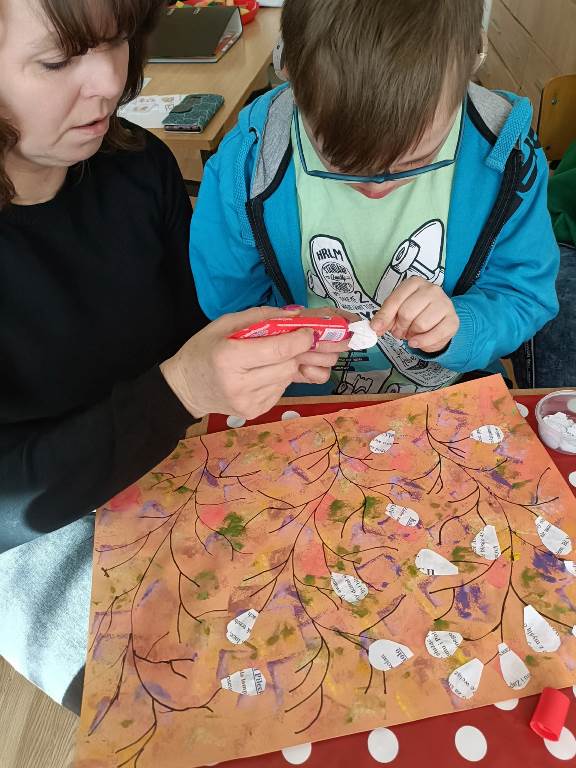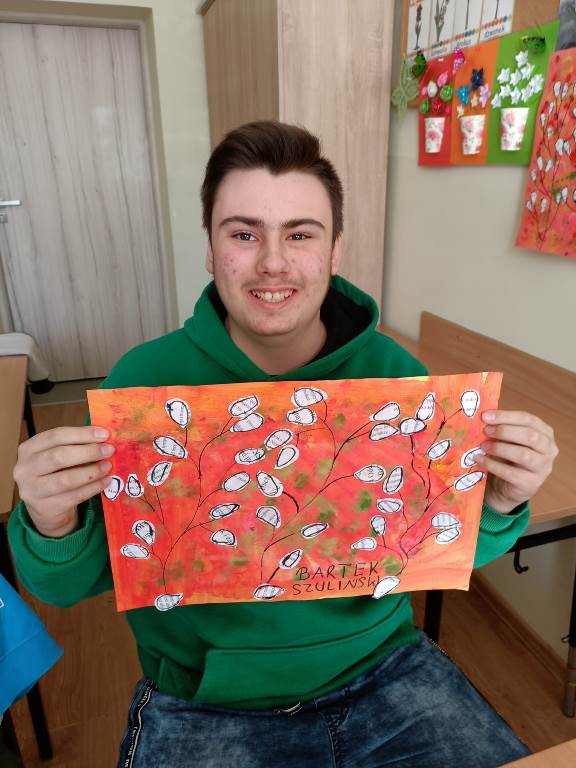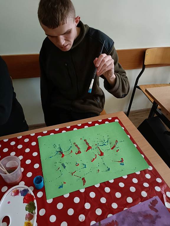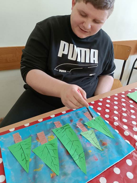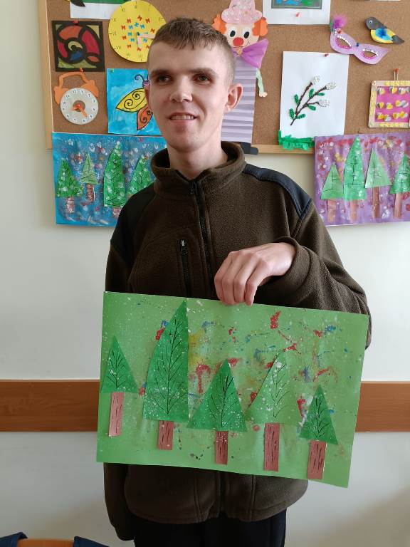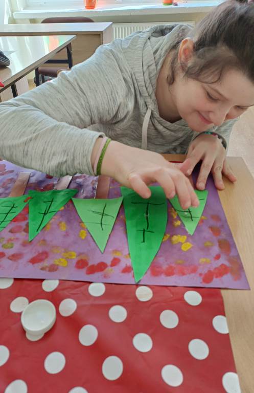 W tym tygodniu zrealizowaliśmy dwa zadania wyznaczone na miesiąc luty oraz marzec projektu edukacyjnego "Kreatywne prace plastyczne." Wykonaliśmy zimowy las na papierze malowanym deszczem