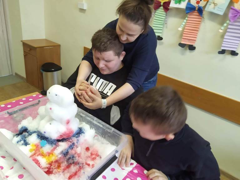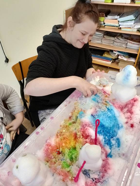 Witamy i meldujemy wykonanie modułu II - Zima ogólnopolskiego projektu edukacyjnego "Razem przez cztery pory roku." Lepiliśmy bałwany, bawiliśmy się w poszukiwaczy ukrytych w górach lodowych skarbów