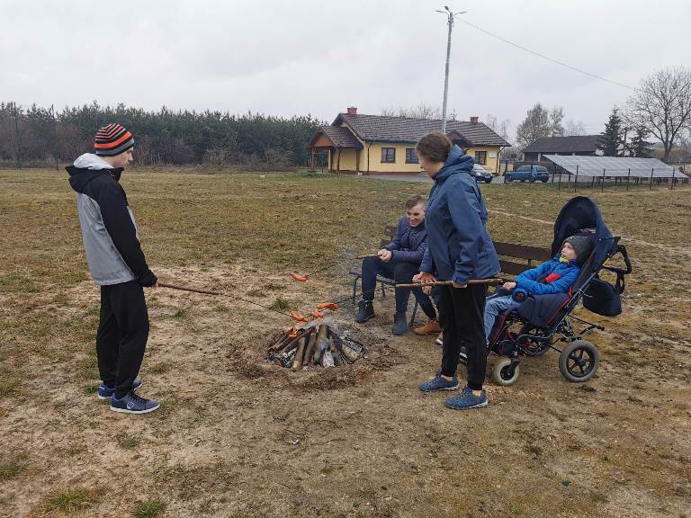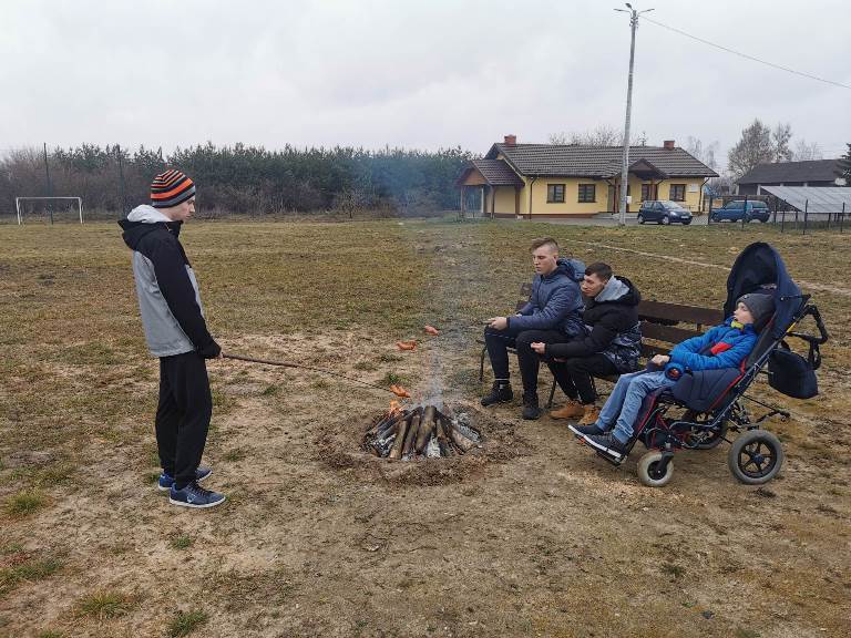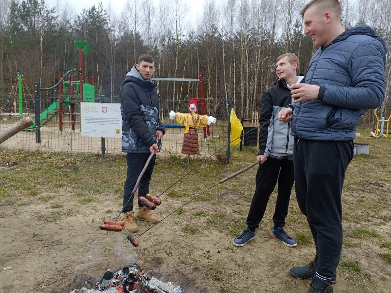 Dzisiaj tradycyjnie jak co roku obchodziliśmy Pierwszy Dzień Wiosny. Najbardziej oczekiwaną atrakcją dnia było wyjście na spacer, podczas którego mogliśmy pożegnać zimę i powitać wiosnę. Wychowankowie radośnie maszerowali w wiosennym pochodzie, na czele którego widniała Marzanna. Przemarsz zakończył się ogniskiem, przy którym dzieci zajadli się upieczoną kiełbaskę i popijały gorącą herbatę. Wszyscy doskonale bawiliśmy się na świeżym powietrzu.