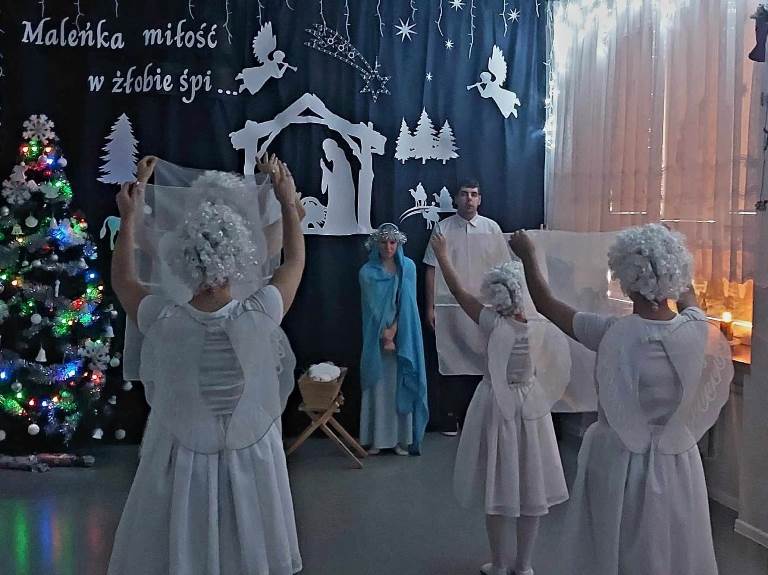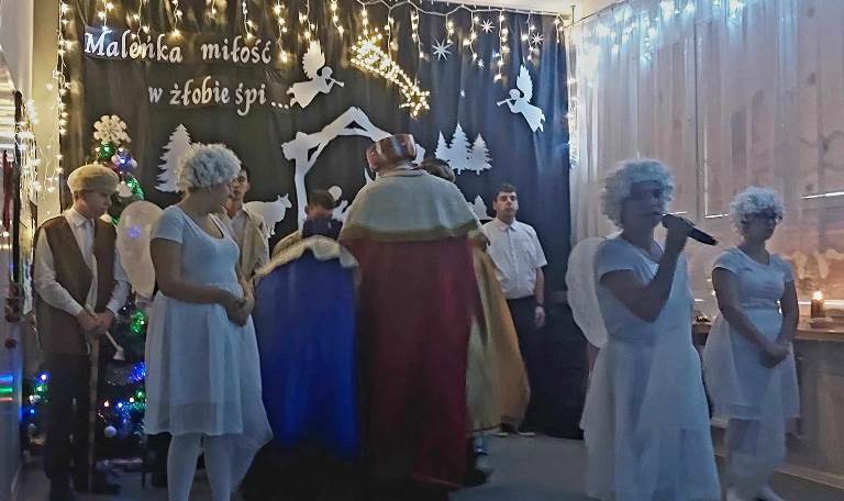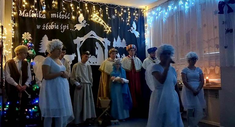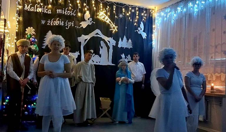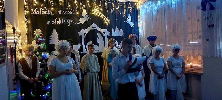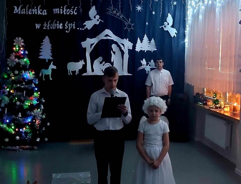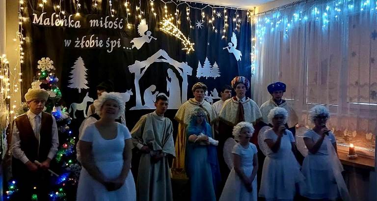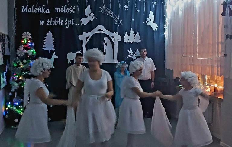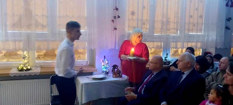 W przedświątecznym nastroju- pełnym radości, miłości, wzajemnego szacunku oraz życzliwości, odbyło się spotkanie opłatkowe. Zaprezentowana przez naszych uczniów inscenizacja upamiętniająca chwilę narodzin Jezusa Chrystusa w magiczny sposób wprowadziła nas w nastrój oczekiwania na tę radosną nowinę. Kolędując z nami, najserdeczniejsze życzenia: „ Zdrowych, Wesołych Świąt Bożego Narodzenia,” złożyli wszystkim obecnym na spotkaniu Starosta Powiatu Opatowskiego Sz.P. Tomasz Staniek, Członek Zarządu Powiatu Sz.P. Andrzej Gajek, Pani Dyrektor Anna Szymczuch– Bąk oraz Sz. P. Anna Czyż- Wychowawca Lider Placówki Opiekuńczo-Wychowawczej w Ożarowie. Cieszymy się i jesteśmy ogromnie wdzięczni, iż w natłoku spraw codziennych znaleźli wszyscy Państwo czas, aby wspólnie z nami móc celebrować tę wzniosłą i niepowtarzalną chwilę.