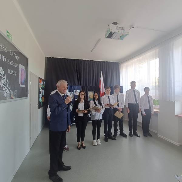 11.04.2024r. odbyła się akademia poświęcona patronowi szkoły. W 10 rocznicę nadania naszemu Ośrodkowi imienia Mieczysława Jopka przybyli zaproszeni goście żona Halina Jakóbczak Jopek oraz jego syn Paweł Jopek. Uczniowie przedstawili bogaty życiorys pana doktora, jego zaangażowanie i poświęcenie dla innych. Członkowie rodziny wspominali Mieczysława jako niosącego pomoc pacjentom oraz dobrego męża i ojca. Pod obeliskiem z tablicą patrona zostały złożone kwiaty i zapalone znicze.