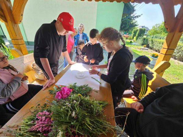 Dzisiaj w naszym Ośrodku obchodziliśmy Dzień Pustej Klasy, który spędziliśmy na świeżym powietrzu, czerpiąc inspirację z natury. Wspólnie, wybraliśmy się korowodem na spacer, podczas którego zbieraliśmy różnorodne kwiaty i rośliny. Po powrocie do szkoły uczniowie mieli okazję wykorzystać zebrane rośliny do stworzenia kolorowych kompozycji na kartonach. Uczniowie z wielkim zaangażowaniem układali z roślin obrazki kojarzące się z latem co pozwoliło im na twórcze wyrażenie siebie oraz na chwilę relaksu w otoczeniu pięknej przyrody.