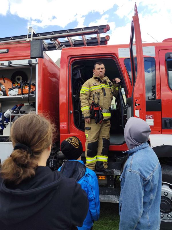 W związku z obchodzonym 4 maja Dniem Strażaka w dniu dzisiejszym odwiedzili nas druhowie z Ochotniczej Straży Pożarnej w Ożarowie. Celem wizyty było zapoznanie uczniów z pracą strażaków, edukacja na temat bezpieczeństwa pożarowego oraz przekazanie podstawowych zasad postępowania w sytuacji zagrożenia. Wizyta była okazją do lepszego zrozumienia roli strażaków w społeczeństwie.