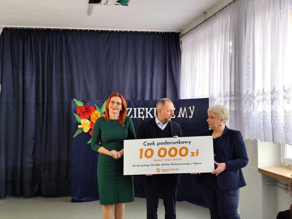 Ośrodka Szkolno- Wychowawczego w Dębnie składają serdeczne podziękowania Cementowni Ożarów za darowiznę w kwocie 10 000, przekazaną przez pana Marka Majchera Dyrektora ds. komunikacji i relacji zewnętrznych Cementowni Ożarów. Otrzymana darowizna jest dla nas nieocenioną pomocą