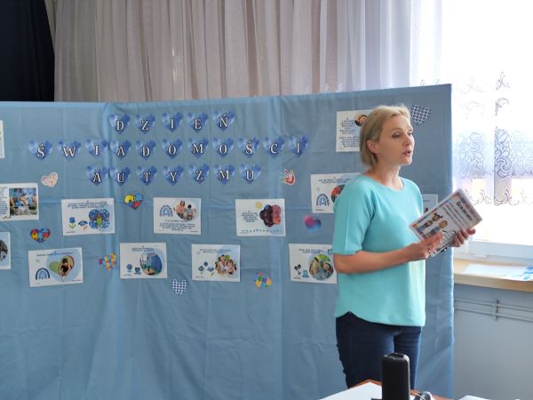 promowanie akceptacji i zrozumienia dla osób ze spektrum autyzmu. W ramach obchodów uczniowie oraz nauczyciele ubrali się na niebiesko- kolor symbolizujący solidarność z osobami autystycznymi. Przeprowadzono warsztaty, podczas których odbyła się projekcja filmów edukacyjnych o spektrum autyzmu, omawiano, czym jest autyzm, jakie wyzwania napotykają osoby ze spektrum oraz jak możemy wspierać ich w codziennym życiu. Wszyscy wspólnie przygotowali na szkolnym korytarzu gazetkę informacyjną. Dzień ten był doskonałą okazją do refleksji oraz do budowania bardziej otwartej i empatycznej społeczności szkolnej. Dziękujemy wszystkim za zaangażowanie!