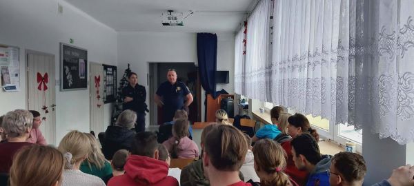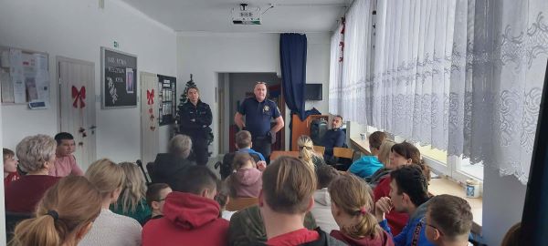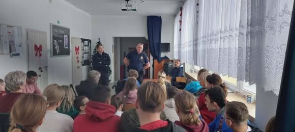 W związku ze zbliżającym się feriami zimowymi odbyło się spotkanie profilaktyczno- edukacyjne z funkcjonariuszami Policji oraz Straży Miejskiej. Poruszone zostały tematy bezpieczeństwa w czasie zabaw zimowych na śniegu, przestrzegano przed ślizganiem się i zabawami na zamarzniętych zbiornikach wodnych. Przypomniane zostały również zasady bezpiecznego poruszania się po drogach, ulicach oraz zasady bezpieczeństwa w sieci.