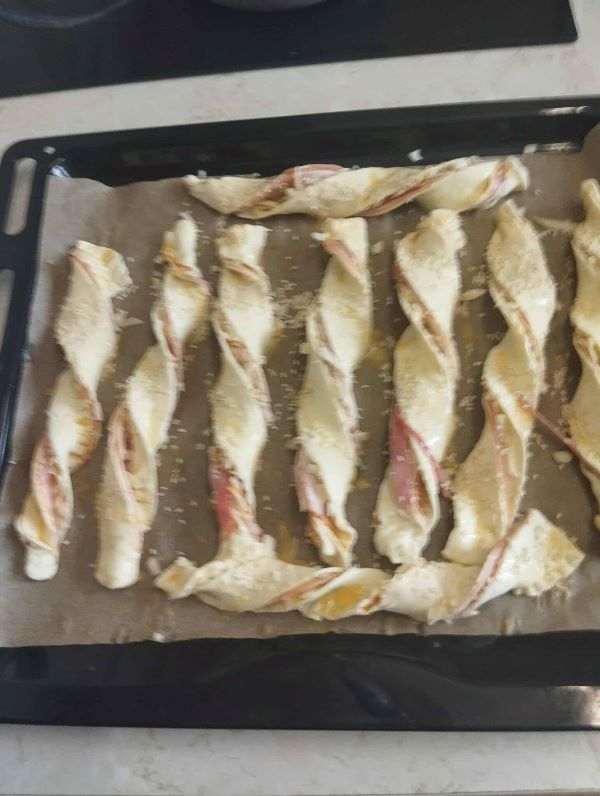 Przekąski karnawałowe - bekonowe paluchy z ciasta francuskiego